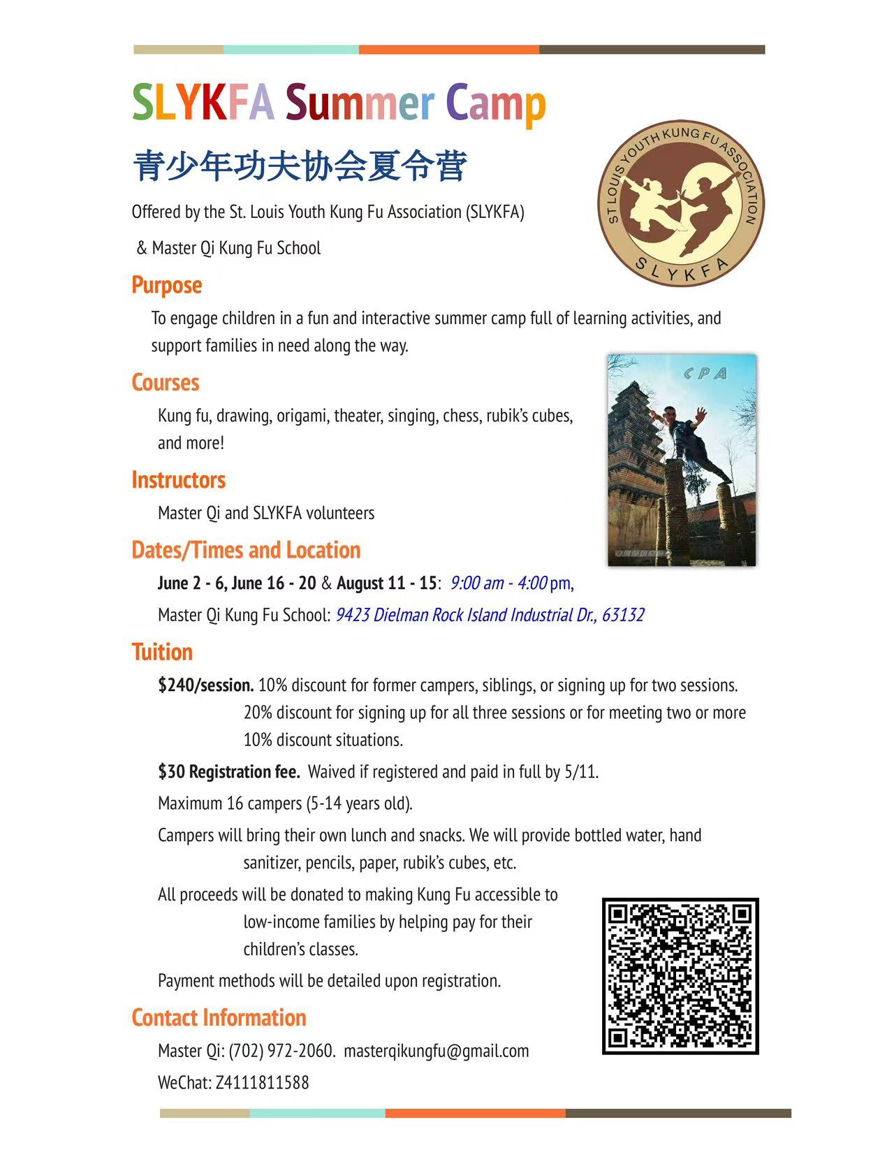 Each summer, SLYKFA hosts dynamic youth camps that go beyond Kung Fu. While students receive expert training from our Master, they also explore a variety of other talents and interests led by our passionate counselors and youth leaders. From solving Rubik’s cubes and playing chess to exploring art through drawing and other creative workshops, our campers are encouraged to grow in all dimensions—mind, body, and spirit.